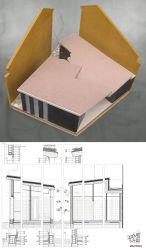 Les seccions resultants de les edificacions que defineixen els límits de la parcel·la per al Consultori Local i la plaça - parc, ens porten a la solució que reconeix les dues volumetries que es troben. La proposta tanca volumètricament la continuïtat de la mitgera del teixit que ve des del carrer de la Carretera, tot reconeixent l’altre volum edificat del Carrer Sant Agutí i mantenint la separació de dos metres, seguint les pendents de la coberta perpendicularment a l’alineació. La resolució de la continuïtat del xamfrà mante les alineacions als dos carrers, i la coberta, a dues aigües i una única direcció del pendent, acull dos volums programàtics que segueixen la direcció de cadascun dels carrers del xamfrà respectivament. L’espai entre els dos volums, sota la coberta provoca l’accés a l’edifici.